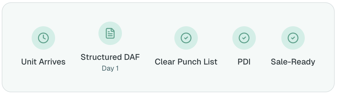 Every day a unit isn't sale-ready costs floorplan interest, delays revenue, and ties up capacity. A structured day-one inspection creates a clear, visible punch list — no chasing down three people and a folder of photos.