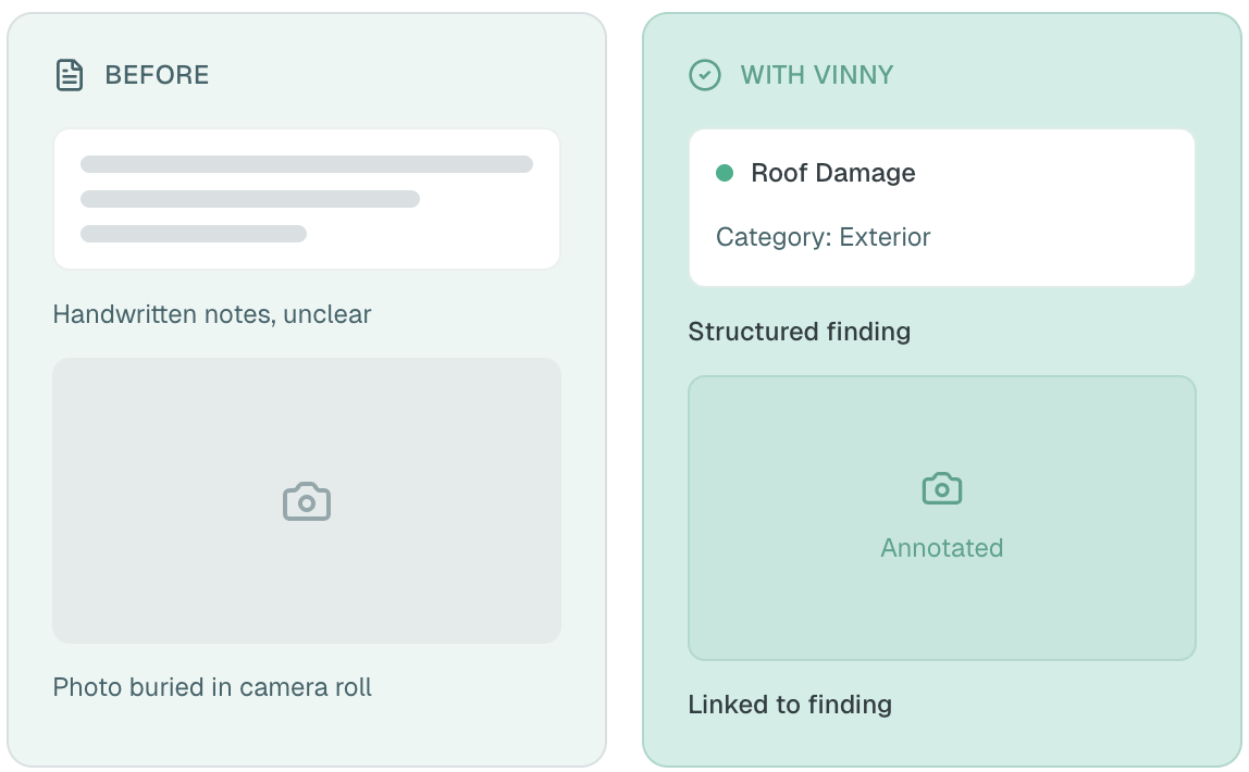 Most inspection processes rely on memory. vinny captures what actually happened.